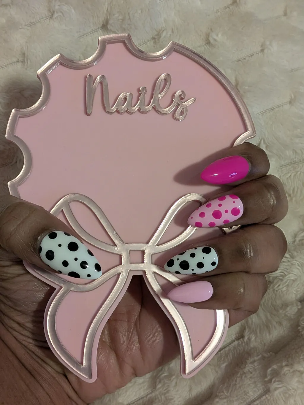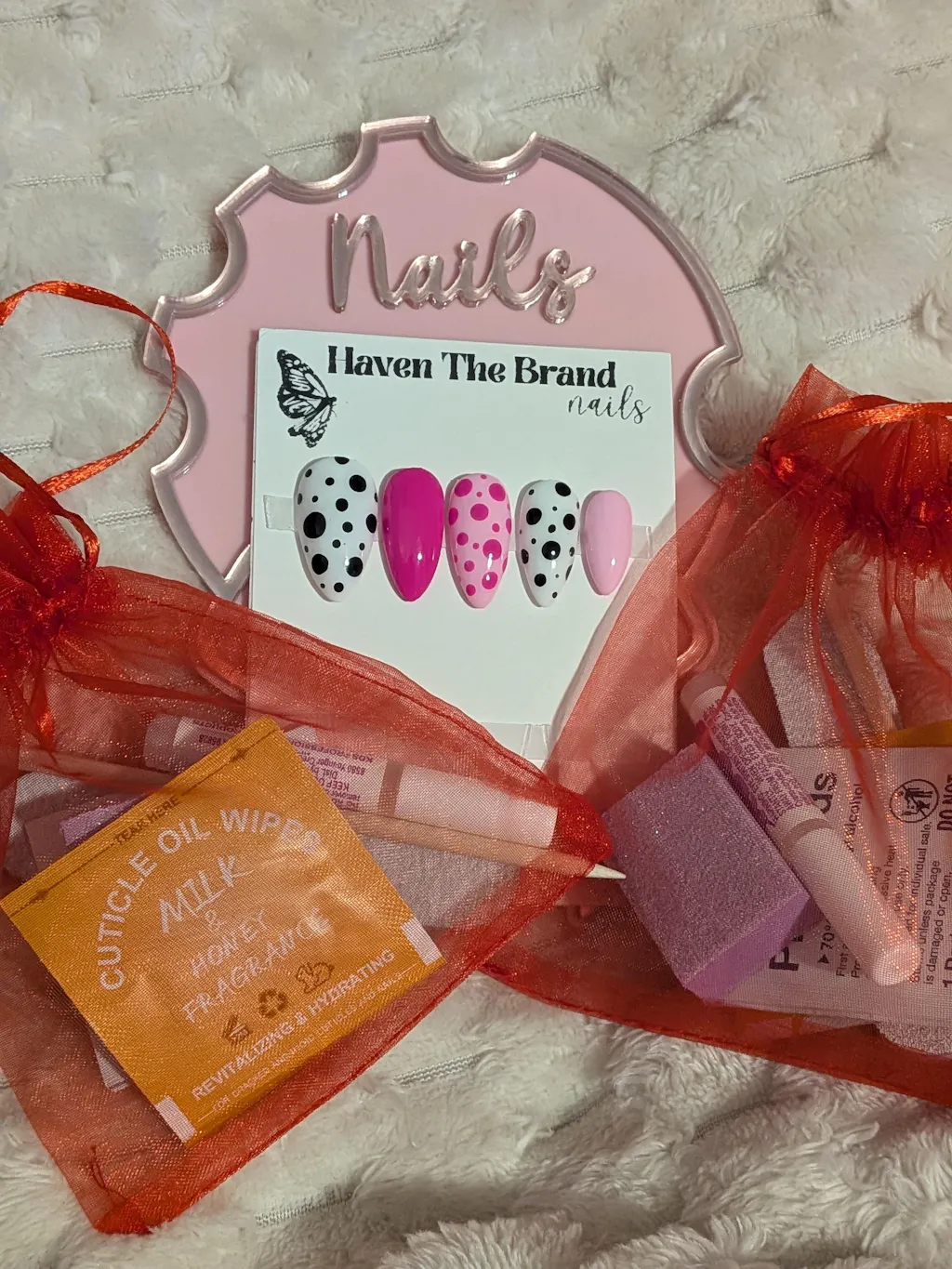 I ALWAYS love my nails before I even receive them. I asked for design change and it is just to my liking.Show my girl a picture and she does it even better every time. I love how she sprays the package with a smell good fragrance. My nails are picture perfect every time. The prep kit is a must for long lasting nails.