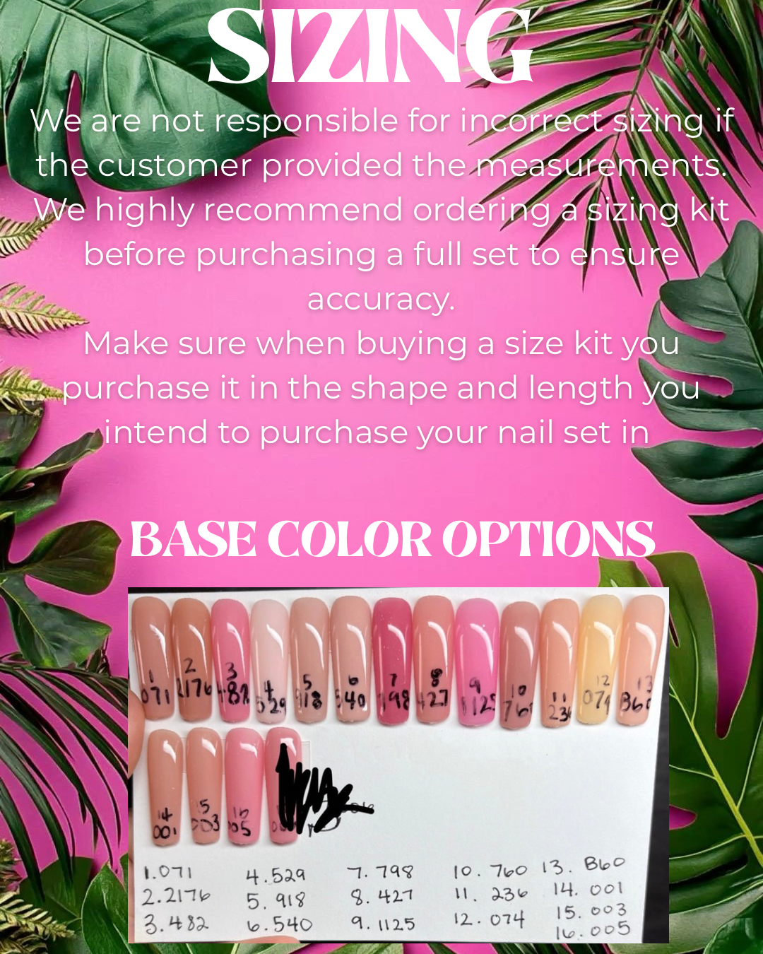 ALSO, MAKE SURE YOU'RE BUYING THE SIZING KIT IN THE SHAPE AND LENGTH YOU INTEND TO BUY BECAUSE NOT ALL SHAPES AND LENGTHS HAVE THE SAME SIZING!